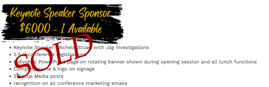 - Company name on PowerPoint rotating banner shown during opening session and all lunch functions
