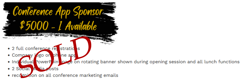 - Company name on PowerPoint rotating banner shown during opening session and all lunch functions
